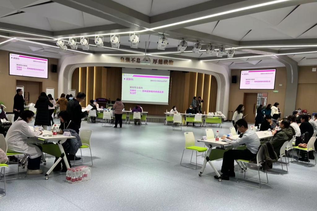 讲堂变“诊室”。这里,医生家长们身着白服,手持各种专业工具,问着病情,记着医嘱,全神贯注,用他们精湛的医术和满腔的热情,为前来问诊的教职工送上最贴心的健康服务。