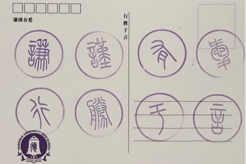 活动过程中,同学们以学习成长小组为单位,手持具有学部特色的明信片,穿梭于圆明园的各个角落,寻找固定盖章点和隐藏盖章点。到达固定盖章点,同学们就可以在明信片上集齐“谦”“谨”“有”“爱”四个印章。而要找到隐藏盖章点,同学们需要说出暗号,才能获得“行”“胜”“于”“言”四个印章。这些设计,都大大增加了活动的趣味性和挑战性。