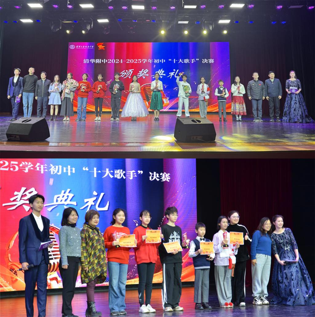 经由专业评委与大众评审团评定,bg真人娱乐2024-2025学年度初中“十大歌手”获奖名单正式揭晓:王一然、江泓毅、滕子菲、荐云天、熊易潇、张楚晗、胡逸轩、王炫然、王妙桐和王若初组合、张子衿荣获本届“十大歌手”称号。曹海翔老师、白雪峰老师、魏磊老师和王田老师一起为获奖选手颁发奖杯和奖状。