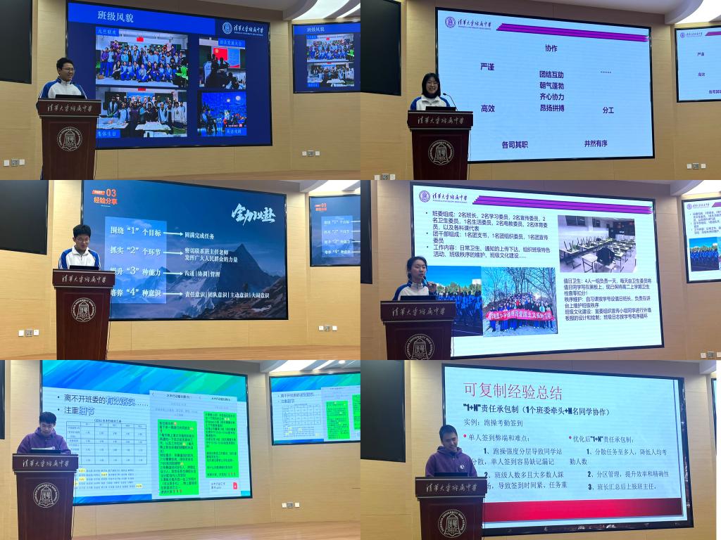 随后,进行高23学部班级风采展示活动。各班班长系统梳理了进入高二年级以来的班级建设成果,从组织架构优化、学风建设推进、特色文化培育等角度展开汇报。各班级通过建立学习互助共同体、实施班务轮值制度等创新举措,在增强集体凝聚力方面树立了标杆典范,“团魂建设”“crossword班会”“传统文化沉浸式体验”“碎片时间沟通会”“新定义专属讨论群”“‘1+N’责任承包制”等特色设计,更为高24学部提供了可借鉴的实践经验。述职结束后,参会人员通过量化评分表对述职班级进行综合评价。
