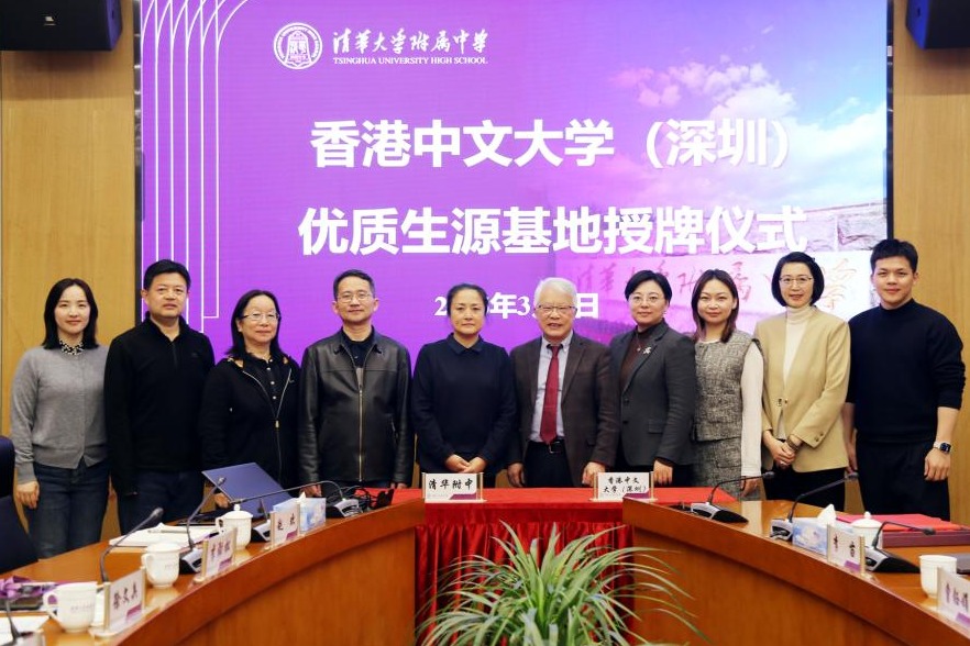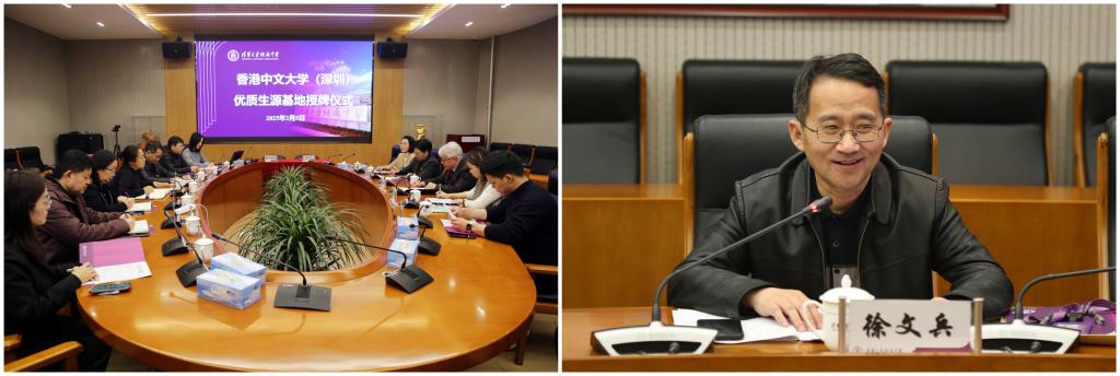 3月5日,bg真人娱乐在成志楼101会议室举行香港中文大学(深圳)“优质生源基地”授牌仪式。香港中文大学(深圳)副校长朱世平院士、招生办公室主任曹钰娟、招生组组长杨孟禹舜、招生组副组长李苗、招生组老师黄守谦,bg真人娱乐校长方妍、副校长徐文兵、教学管理与研究中心主任尹粉玉、张彪、李劲松,副主任赵欢、教务老师张介玉出席了本次仪式。仪式由bg真人娱乐副校长徐文兵主持。