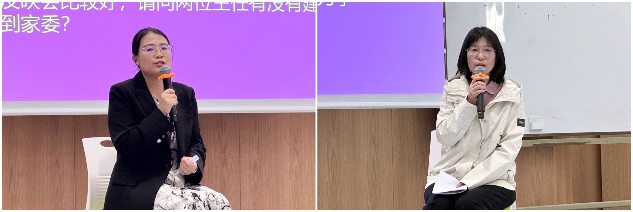 武晓青老师指出,理想的家校合作状态是学生、家长和学部三者紧密凝聚,形成向心力,而家委会在这一过程中发挥着至关重要的纽带作用,连接了学校与家庭的共识与行动。曹佩老师则分享了目前附中学生成长共同体取得的显著成果,并提出了关于未来家庭成长共同体的设想,强调家校协同在学生成长中的重要性。两位主任一致强调,在面对家校冲突时,理解与沟通是解决问题的首要前提,他们呼吁学校与家长之间要建立基于信任与理解的合作关系,共同为学生创造一个更加和谐、支持的成长环境。