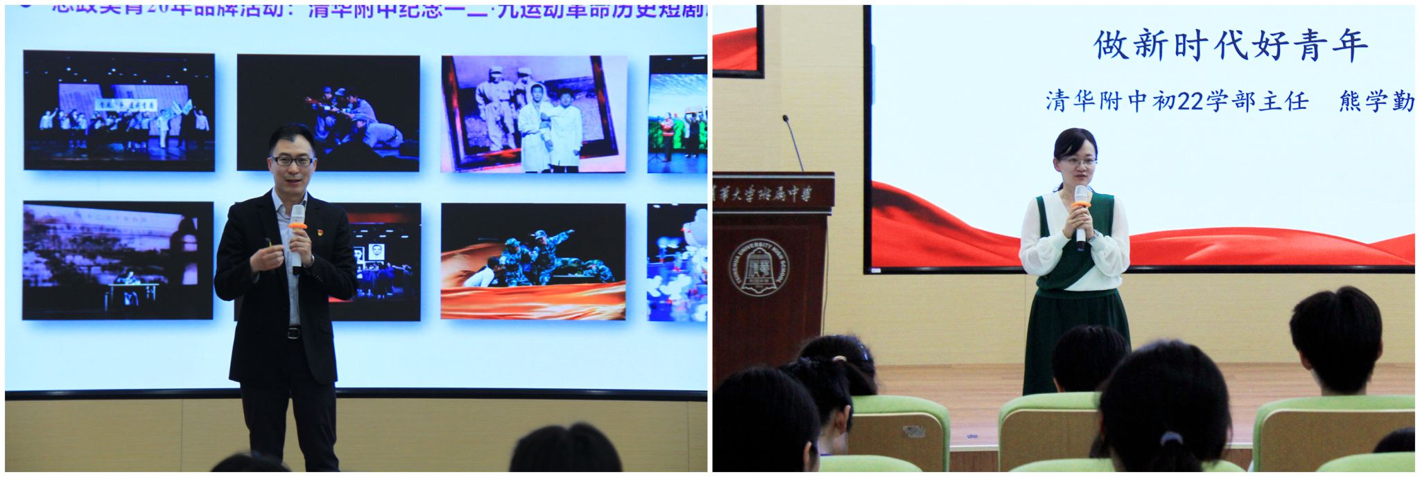 5月8日,bg真人娱乐初三创新书院举办“微光成炬,履践致远”五四主题团日活动,特别邀请清华大学航天航空学院2021级本科生薛晗分享自身经历。bg真人娱乐校团委书记于洺、少先大队辅导员付帅、bg真人娱乐初22学部主任熊学勤、创新书院各班主任及全体学生一同参加活动。活动由初2211班学生高泓弈和曾子彤共同主持。