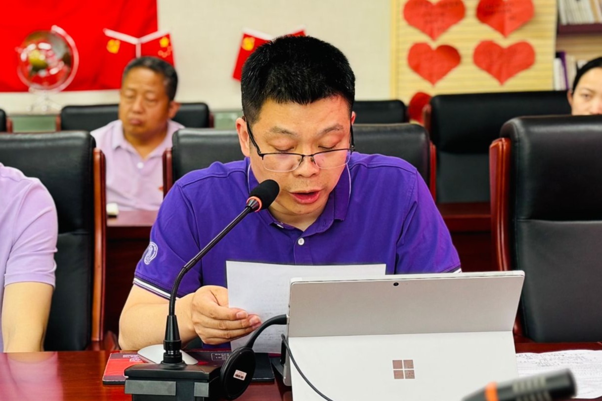 支部书记潘天俊作总结发言。共产党员的身份不是终点,而是新的起点,是更高追求的开始,希望张日月老师能够继续加强理论知识学习,用党的创新理论指导自己的工作。也希望所有党员老师借此机会重温入党誓词,重温入党初心。不忘初心,才能永葆青春,要坚定信念,砥砺前行,做人民的教师,为党育人,为国育才,为附中的高质量发展贡献最大的力量。