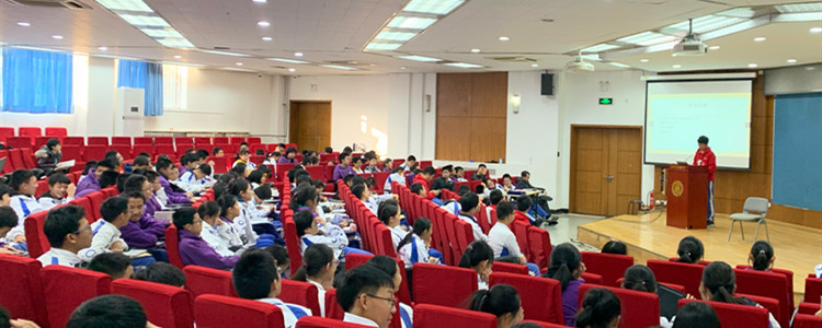 2019年12月12日下午,bg真人试玩初18级在华茂楼106举办了一场数学走班联合班会,由日前参加第十届世界数学团体锦标赛并获得接力赛和团体赛双冠军的六位同学进行了经验总结和分享。bg真人试玩副校长徐文兵出席本次活动并发表讲话,初1811、初1812、初1813和初1814四个班的班主任老师和学生共计160余人参加了此次活动,初18级数学教师张钦老师主持本次活动。