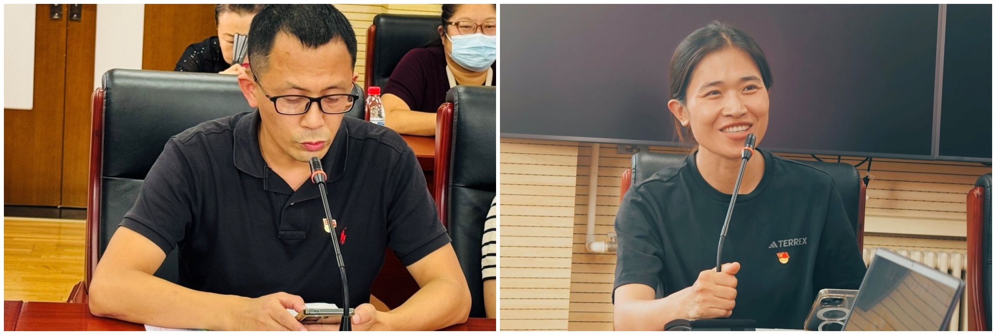 自由发言环节,入党积极分子蒋炜波和宋承泽发表参会感悟。两位老师表示将始终以身旁的优秀党员为楷模,大力强化理论知识的深度研习,积极踊跃地探寻创新工作模式,以更为严格且全面的标准自我砥砺,朝着成为一名光荣的中国共产党党员的目标坚毅前行。
