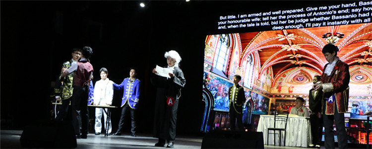 演员们投入的表现以及编剧对原著改编的谨慎设计,反映了14班同学们对莎士比亚作品的理解,人物形象鲜明,情节波澜起伏,引人入胜。