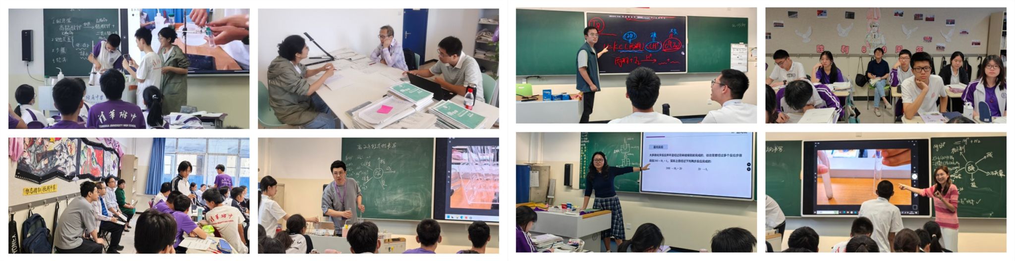 物理学科各年级课堂注重实验教学与科学思维培养。初三物理课堂,胡译文老师从电阻影响因素入手介绍滑动变阻器和电阻箱,让学生动手连接电路;陈艺灵老师引导学生设计实验,探究电流与电阻、电压关系,介绍相关定义式与定律适用条件,教研员李俊鹏老师给出详细建议。高一物理调研中,教研员崔琰老师听取苏玥老师《自由落体》一课,苏老师借助手机传感器、专业软件及纸带计算,帮助学生理解自由落体加速度,崔琰老师对其充分准备、精巧设计及良好教学效果给予好评。高二物理课堂,李晓晴老师课程语言兼具科学性与感染力,知识点衔接设置认知锚点,互动与总结得当;俞鹏老师将理论推导与创新实验融合,引导学生经历科学探究过程,教研员马朝华老师高度评价两位老师课程,同时提出针对性改进建议。高三邱楠、孟祥来老师的一轮复习围绕“能量”主题,从不同角度讨论功的计算方法并结合例题巩固,为后续能量综合应用奠定基础,教研员王春梅称赞邱老师的课,能让学生投入专注积极互动,肯定孟老师作为青年教师基本功到位,板书和讨论的问题设计合理。