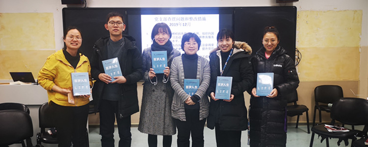 在民主评议的过程中,各党支部结合实际情况开展了特色学习活动。政史地教研组联合党支部邱磊老师为支部作十九届四中全会公报解读,重点梳理了党中央对国家治理制度的规定,着重强调了新时代国家治理进程“三步走”规划,让党员们对中国特色社会主义根本制度、基本制度和重要制度有了清晰的理解。语文艺术教研组联合党支部特别邀请郭林丽老师作为支部新吸收的入党积极分子向大家介绍自己的思想学习状况,党委委员、副校长白雪峰老师代表支部向郭老师赠送了党员学习记录本,鼓励她继续积极深入学习。外语体育教研组联合党支部对每一位成员的汇报进行提问并就每位党员的改进措施进行讨论和优化。教育职员与国际部党支部通过图片、视频、抢答、分享共同回忆总结2019年度支部活动,充分沟通情感,凝聚共识,提升党员意识和自信。