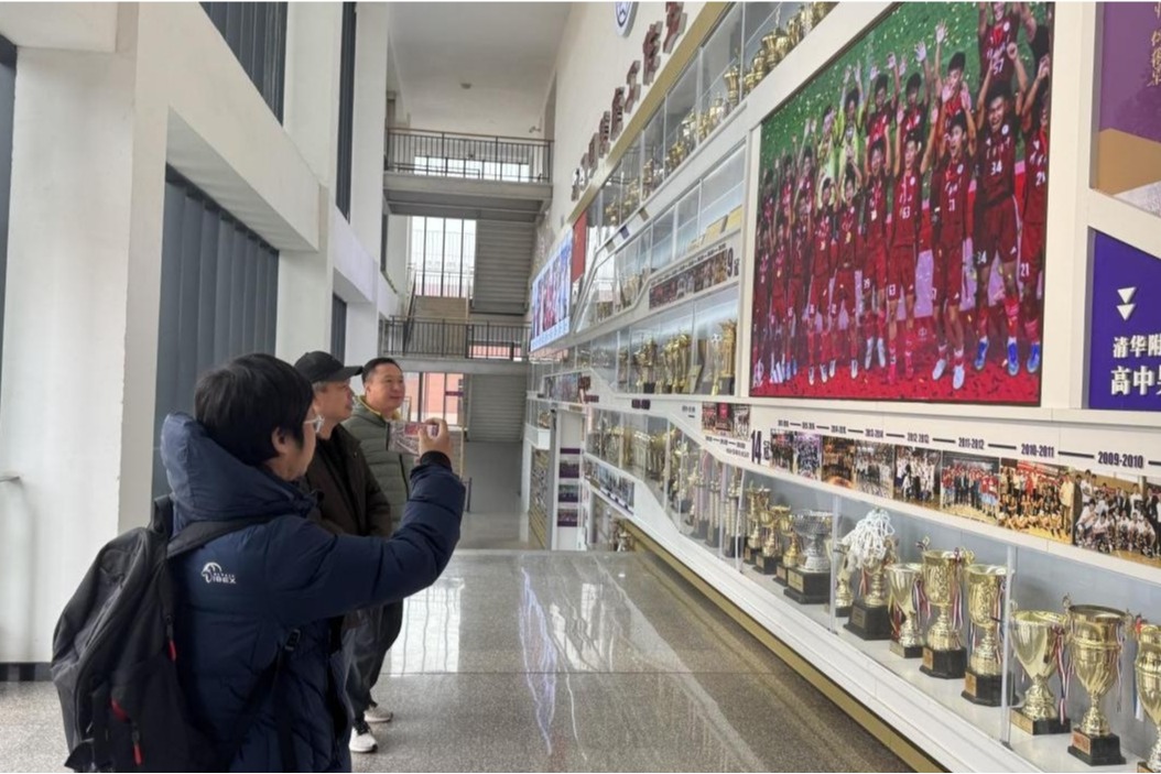 在丁磊和荆传涛两位老师的引导下,专家组成员参观了学校体育设施、校史馆荣誉墙等特色场馆,沉浸式了解bg真人娱乐的足球教育基础与文化氛围。专家组对学校“标准化配备、精细化管理”的硬件保障模式给予关注;在校史馆与荣誉墙前,图文展板里的足球活动记录、橱窗中陈列的赛事奖杯奖牌,生动展现了学校足球运动的发展脉络与育人成果,专家们对学校数十年如一日深耕足球教育、以体育人的坚持给予高度肯定。