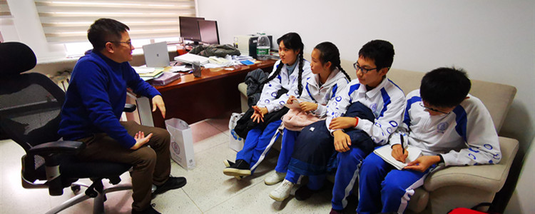 2019年11月23日下午,bg真人娱乐初18级江艾、王雪莹、李思辰、马紫晨四名同学,在数学组张钦老师的带领下,来到中科院数学与系统研究院采访了刚刚被评选为中科院院士的bg真人娱乐937班校友——孙斌勇研究员。