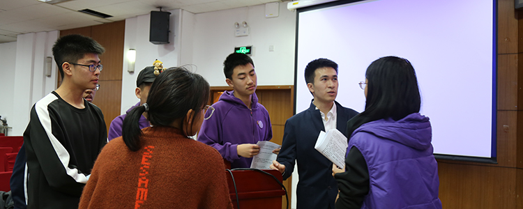 清华大学话剧队闵瀚诚学长的培训内容分为剧本创作,导演构思和演员准备三个部分。学长首先就自己的理解与大家分享了对展演主题的分析以及创作剧本时的注意事项,强调了人物塑造技巧的重要性。随后,学长介绍了导演组工作的主要环节与流程,为同学们梳理了排好一部剧所需要做的准备。学长还带领大家思考演员该如何演出真情实感并亲自示范了演员在处理不同形象的人物时语言,动作和声音等方面的演绎方法,让同学们钦佩不已。培训结束后进行了现场答疑,闵瀚诚学长耐心地对同学们提出的疑问一一进行解答。
