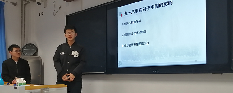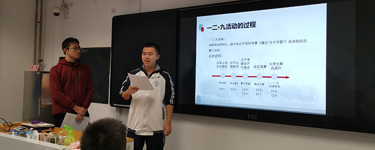 学长们从“九一八”事变开始梳理日本对中国的侵略行动,通过详实的史料,带领同学们从国家和爱国人士的角度分析“一二·九”运动的历史背景。在座的同学们认真倾听那段历史,同时也被抗日战争时期全民的爱国热情和民族精神所打动。