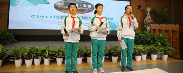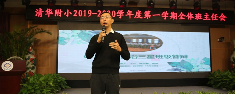 11月22日下午四点,bg真人娱乐初1911班、初1912班、初1802班的班委代表共12人,在学生发展中心主任王田老师、初19级年级组长熊学勤老师和初中德育指导老师程苇航的带领下来到清华附小,在清华附小全体班主任大会上进行了一次特殊的星级自治班级和“水木行动”申请答辩。