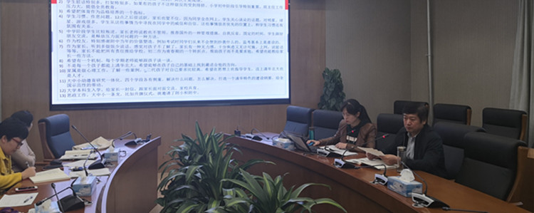 党委委员王田汇报了学生发展中心的调研课题从生涯规划、综评系统、家校沟通等方面的分析与改进方案。