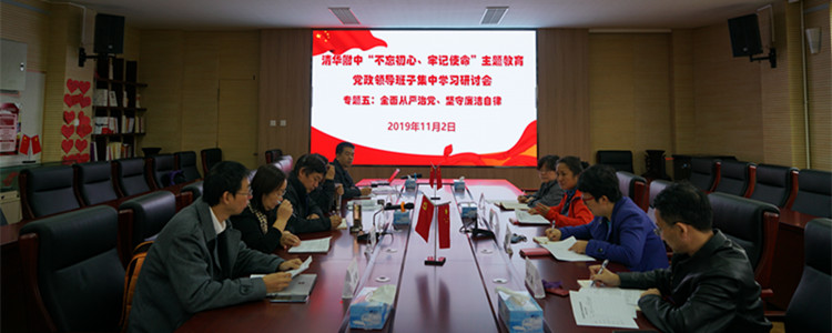 11月2日,bg真人娱乐召开“不忘初心、牢记使命”主题教育第五次专题集中学习,研讨“全面从严治党、坚守廉洁自律”专题。党政班子成员参加学习,党委书记方妍主持学习 。
