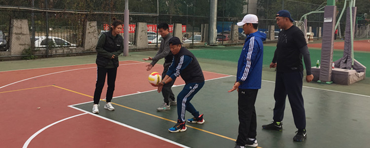 体育组教师进行排球技巧学习