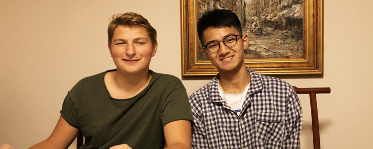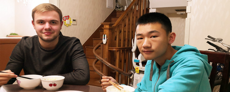我校同学孙亦皓和伙伴Cedric Schramm在家中共进晚餐