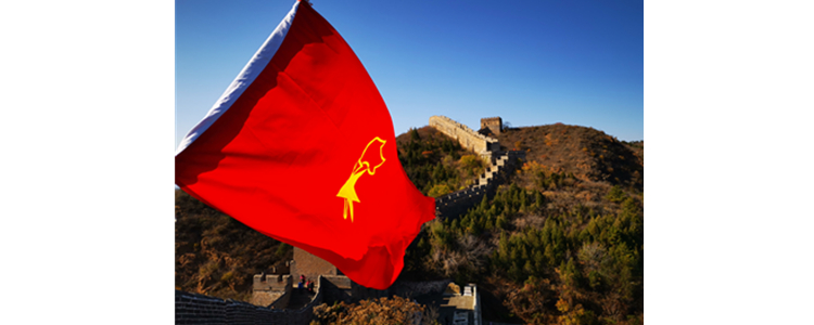队旗在长城飘扬