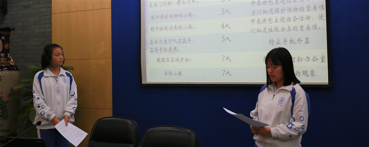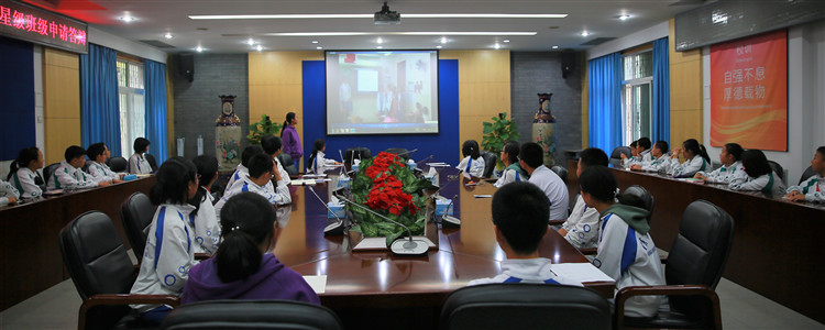 10月17日中午,bg真人试玩初中“水木行动”暨志愿服务星级班级申请答辩会在华茂楼102会议室举行。学生发展中心主任王田、初18级年级组长张彪以及初19级和初18级的班委代表共40余人出席了此次答辩会。本次活动由学生发展中心指导老师程苇航主持。