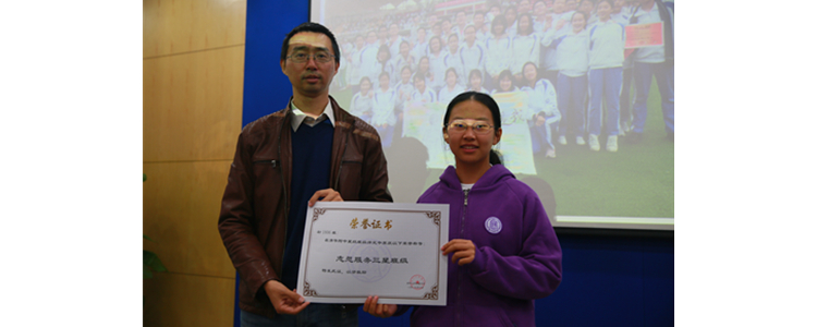 在答辩会结束前,王田主任分别为初1806班、初1807班和初1803班颁发了三星、四星、五星志愿服务星级班级的荣誉证书。