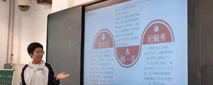 班会课上,各班结合班级的实际情况,开展了一系列丰富多彩的团日活动,主要包括:知识竞答、查阅资料、小组讨论、回顾新中国成立以来优秀艺术作品等。