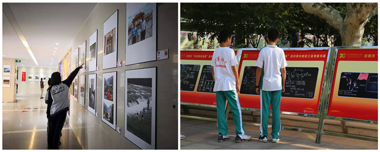 全校党员、教师结合学校工作,家庭生活,行走参观,学习实践拍摄了丰富多彩的照片。展览分“筚路蓝缕一路走来”、“绿水青山就是金山银山”“十年树木、百年树人”“对美好生活的向往”四个专题共呈现70余幅摄影作品。全校师生多日来驻足观看,共同交流,深切地感受祖国的壮美河山、国家的飞速发展、青年人的茁壮成长以及附中人的美好生活。