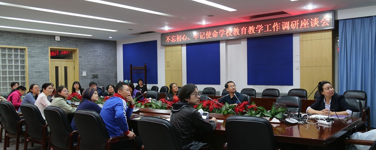 2019年10月10日上午,bg真人娱乐在华茂楼102会议室召开“不忘初心、牢记使命”学校教育教学工作调研座谈会,党委书记方妍,副校长徐文兵,教学管理与研究中心主任尹粉玉、张苏,教科研主任谭晨及各学科教研组长20余人参加了会议,会议由副校长徐文兵主持。