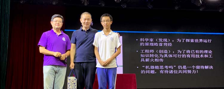 讲座过程中,余宏亮老师围绕计算机能否思考、如何思考带领同学们深入了解了计算机的相关内容。他生动形象地讲述了计算机世界的基本组件和发展历程,结合实例介绍了计算机的沟通语言,并向同学们展示了如何利用计算机算法完成特定的具体任务。最后,余老师细致认真地回答了同学们的现场提问,获得了阵阵热烈的掌声。