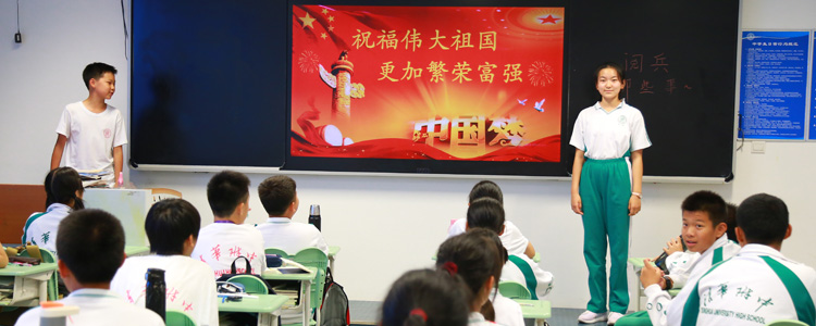 2019年9月,bg真人娱乐各年级开展了庆祝新中国70华诞主题班会活动。班会以班主任讲解历史、国庆知识竞答、分享与祖国的故事、歌唱红歌等多种形式来展开,每一位学生都充分发挥自己的智慧与才艺表达对祖国的祝福。