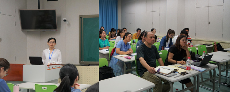 接下来,潘天俊老师作了为题《林深时见鹿——回顾教学14年》的报告。潘老师指出,决定教学成绩的是教师对学生的态度。在备课时要上下牵引,左右勾连,把有限转化为无限。教师应该准确把握学生能力与授课难度的关系。最后,潘老师通过介绍自己尝试翻转课堂、教学案等新的教学模式的经历,鼓励新入职教师不断探索和学习。