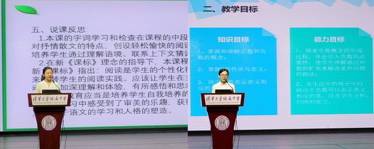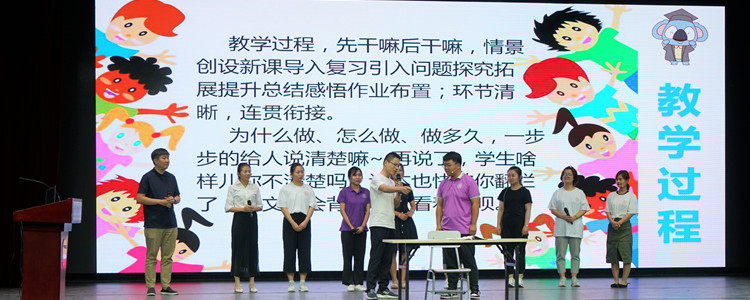 首先是说课展示。语文学科胡月明、数学学科丰海娇、英语学科王明珺、生物学科高微、信息技术学科王新月五位老师展示了说课,几位老师通过对教学目标、教材分析、教法学法、教学过程等说课环节的展示,分享了各自的教育教学理念,体现了新教师们在培训过程中的收获与进步。