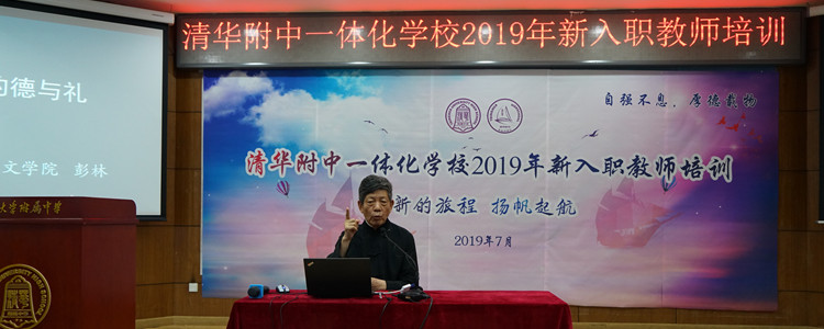 接下来,清华大学人文学院彭林教授为新教师做题为《教师的德与礼》讲座。彭教授学识渊博,旁征博引,讲座引人入胜。他从文明的缘起讲起,指出教师是教育的主导者。他鼓励新教师内外兼修,显君子之风。