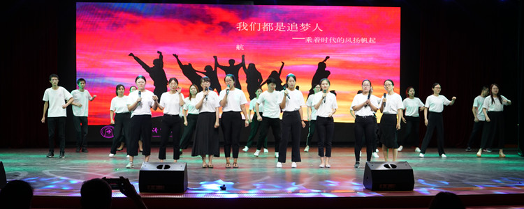 广华学校、朝阳学校的舞台剧《筑梦•启航》,融合了热烈的体操表演和优雅的舞蹈,展示了新教师多样的风格与才艺。