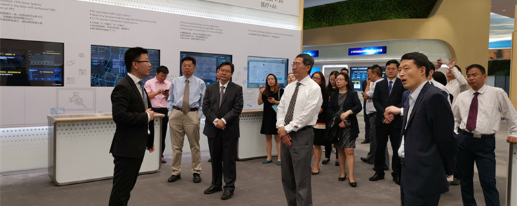 签约仪式前,清华大学党委常务副书记、清华大学校务委员会副主任姜胜耀,bg真人娱乐一体化学校校长王殿军及八位一体化学校执行校长在华为领导的带领下参观华为数字化转型展厅。