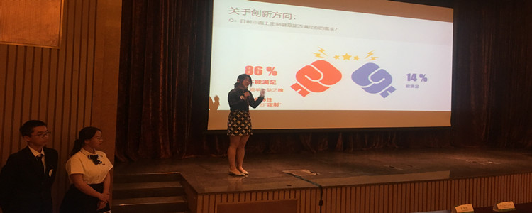 本次比赛分为“舞台展示”和“产品展销市集”两个环节。在上午的舞台展示环节,两个团队分别进行了公司商业计划书的展示,在规定的时间内向评委展示自己公司的商业运作模式及主营产品等相关活动信息。