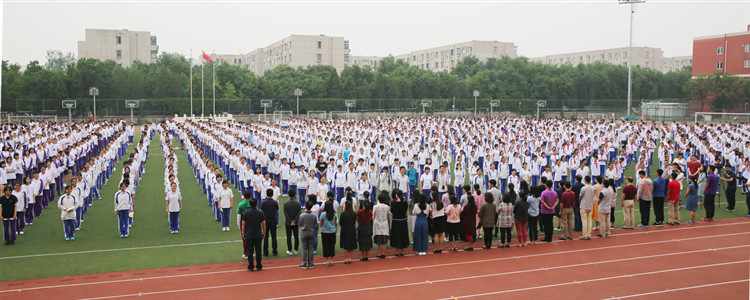 6月17日上午,距离中考还有一周,bg真人娱乐全体师生齐聚操场,隆重举行以“超越中考·肩负未来”为主题的升旗仪式,为即将决战中考的初三学子们壮行喝彩。