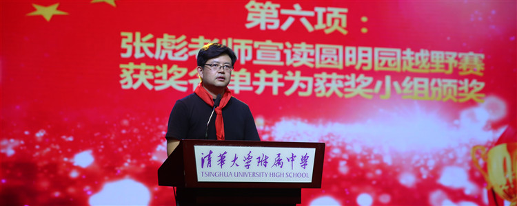 初18级年级组长张彪老师宣读圆明园越野赛表彰名单