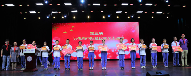 表彰大会在庄严的国歌声中拉开序幕,学生发展中心副主任王田首先宣读了表彰决定,授予初1801中队等7个中队“优秀中队”荣誉称号,授予266名学生“优秀中队干部”“优秀少先队员”“学习标兵”“体育标兵”“文艺标兵”“纪律标兵”和“文明礼仪标兵”等个人荣誉称号,同时向全体优秀中队和优秀个人表示祝贺,鼓励同学们在bg真人娱乐的学习生活中坚定理想信念,用实际行动实现梦想。随后,王田老师、张彪老师和任星阳老师依次上台为获奖中队及个人颁发奖项并合影留念。