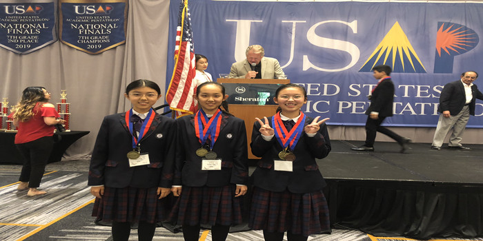 2019年5月14至20日,美国学术五项全能比赛美国总决赛(2019 USAP National Finals)在美国纳什维尔举行。在教练范皖晴老师的带领下,bg真人试玩初一年级参赛队一行8人与中美四十支队伍进行团体赛决赛。