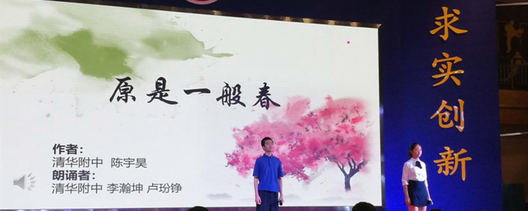 bg真人娱乐代表队由语文组胡洋老师带队,来自初1710班的李瀚坤同学和初1706班的卢玢铮在诗会上表演了配乐诗朗诵《原是一般春》(高1811班陈宇昊同学作品)。