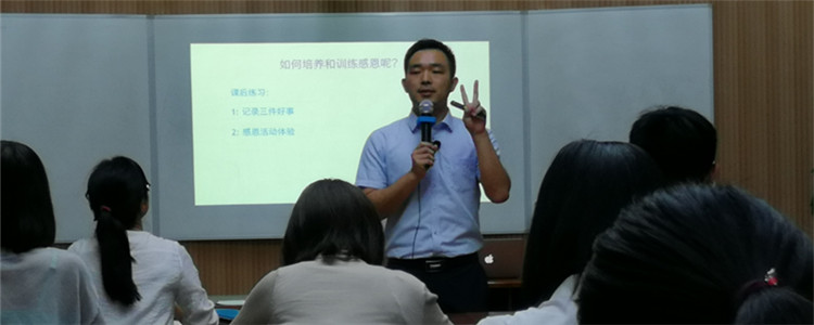 在高中部的培训活动中,来自清华大学积极心理研究中心的刘家杰老师首先通过让大家回忆“三件好事”的方式,开启了对感恩的思考。他认为,许多传统的感恩教育其实是内疚式的教育,即塑造一种“孩子对不起父母付出,所以要加倍回报他们以弥补自身过错”的压抑扭曲的心态,这不是真正的感恩。真正的感恩,是个体在受到恩惠时产生的一种感激和愉悦的感受的情绪体验,它应该是让人温暖的、感动的,从而自发地去回馈对方。