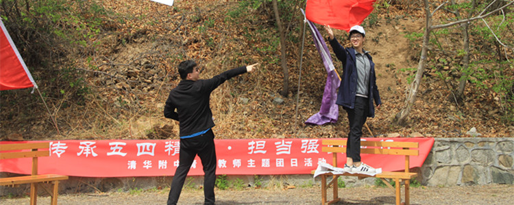 青年教师团到达水长城后进行了五四纪念活动以及团体建设拓展活动。教工团宣传委员岑逸飞老师主持五四纪念活动。