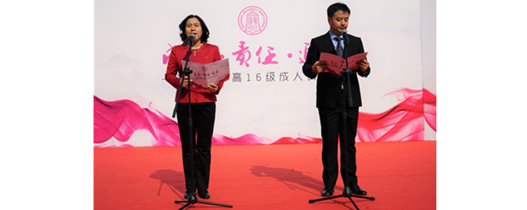 王殿军校长为走过成人门的学子颁发成人纪念徽章