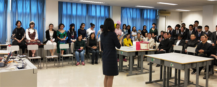 方妍书记为走过成人门的学子颁发成人纪念徽章