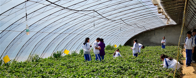 同学们采摘草莓