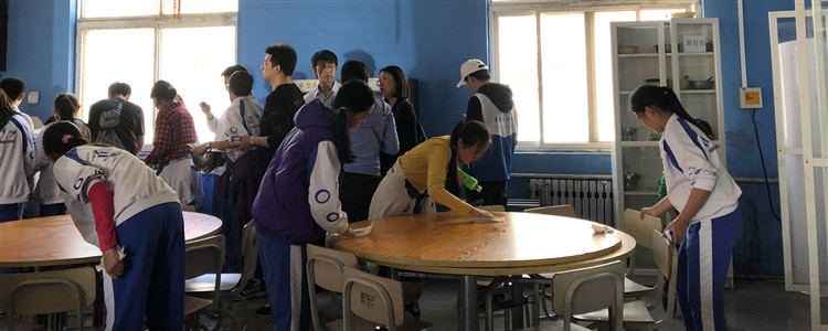 同学们打扫卫生,清理餐具
