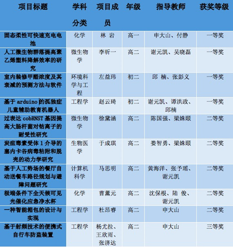 在前期的市赛复评中,bg真人试玩也有部分项目团队获奖。在本次的北京市青少年科技创新大赛中bg真人试玩共斩获一等奖四项,二等奖五项,三等奖一项。