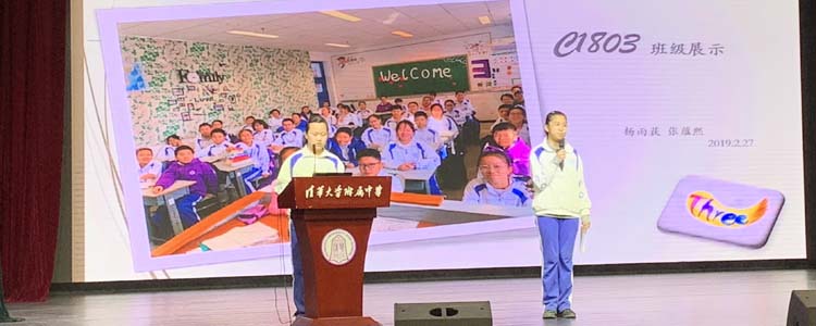 首先,各班代表分别以PPT演讲、朗诵等形式展示了上一学期的示范班践行情况,作出了对新学期的规划和期许,并带领全班同学做出郑重承诺。在同学们的展示过程中,我们分别了解了如手机示范班、卫生示范班、阅读示范班等班级的特色活动,听到了一声声如“读书中君子,做博雅之士”、“既谈诚信,便不辱命!”的庄严承诺,也感受到了同学们在一个学期的时间里所形成的强大班级凝聚力和独具特色的班级文化。