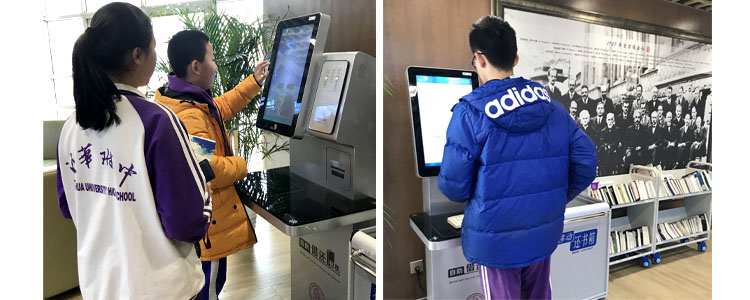 学生在使用自助借还机借还图书